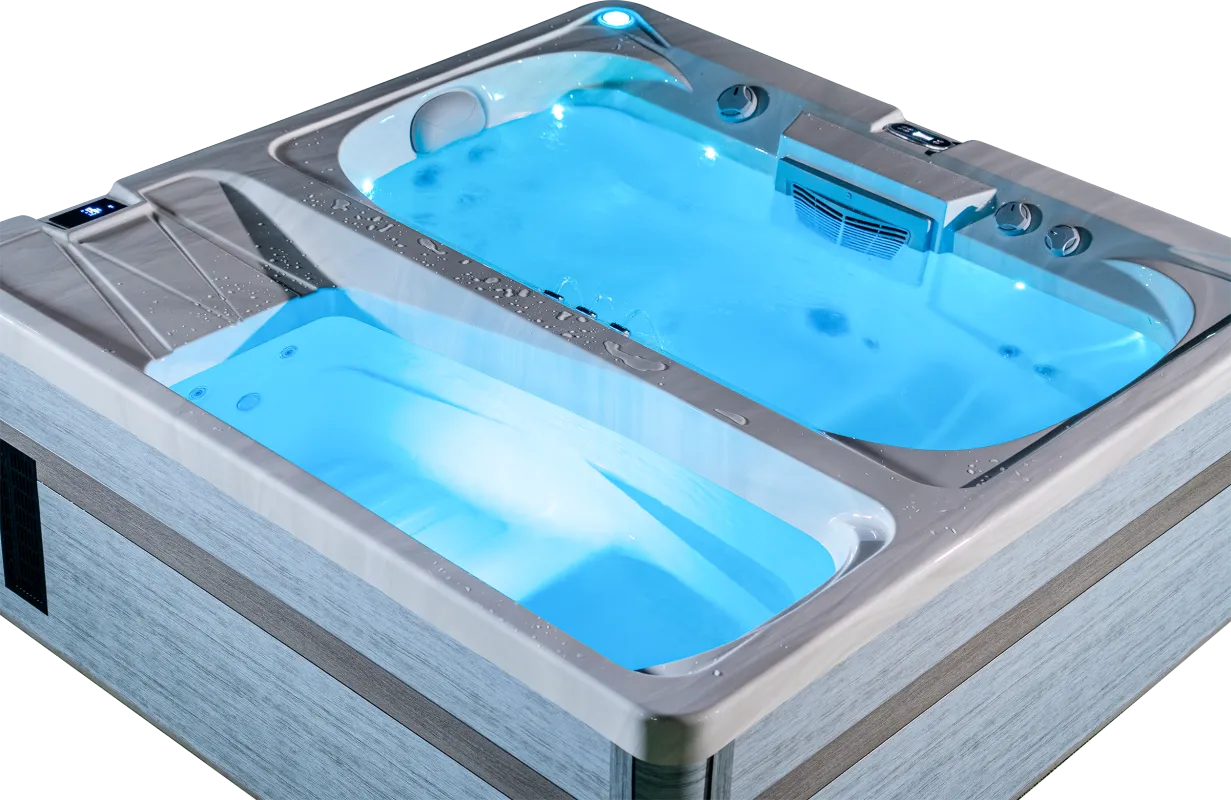 Идеальное решение для спортсменов, сторонников здорового образа жизни и всех, кто стремится к преимуществам гидромассажной ванны с возможностью окунуться в холодную воду, не выходя из дома.