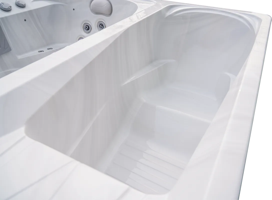 Эта модель бассейна отличается инновационной двузонной конструкцией и передовым техническим оснащением премиум-класса. Для установки требуется ровная поверхность, подключение к системам водоснабжения и электросети.